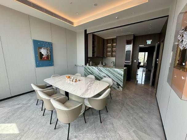 标准户型为4 房连双套房、衣帽间及工人套,面积介乎2,592 – 2,739平方呎;另设特色相连户( 67 – 70 楼),每层设1 伙,户型为4 房4 套连储物室、衣帽间、工人套及书房,面积介乎5,348 – 5,357平方呎。